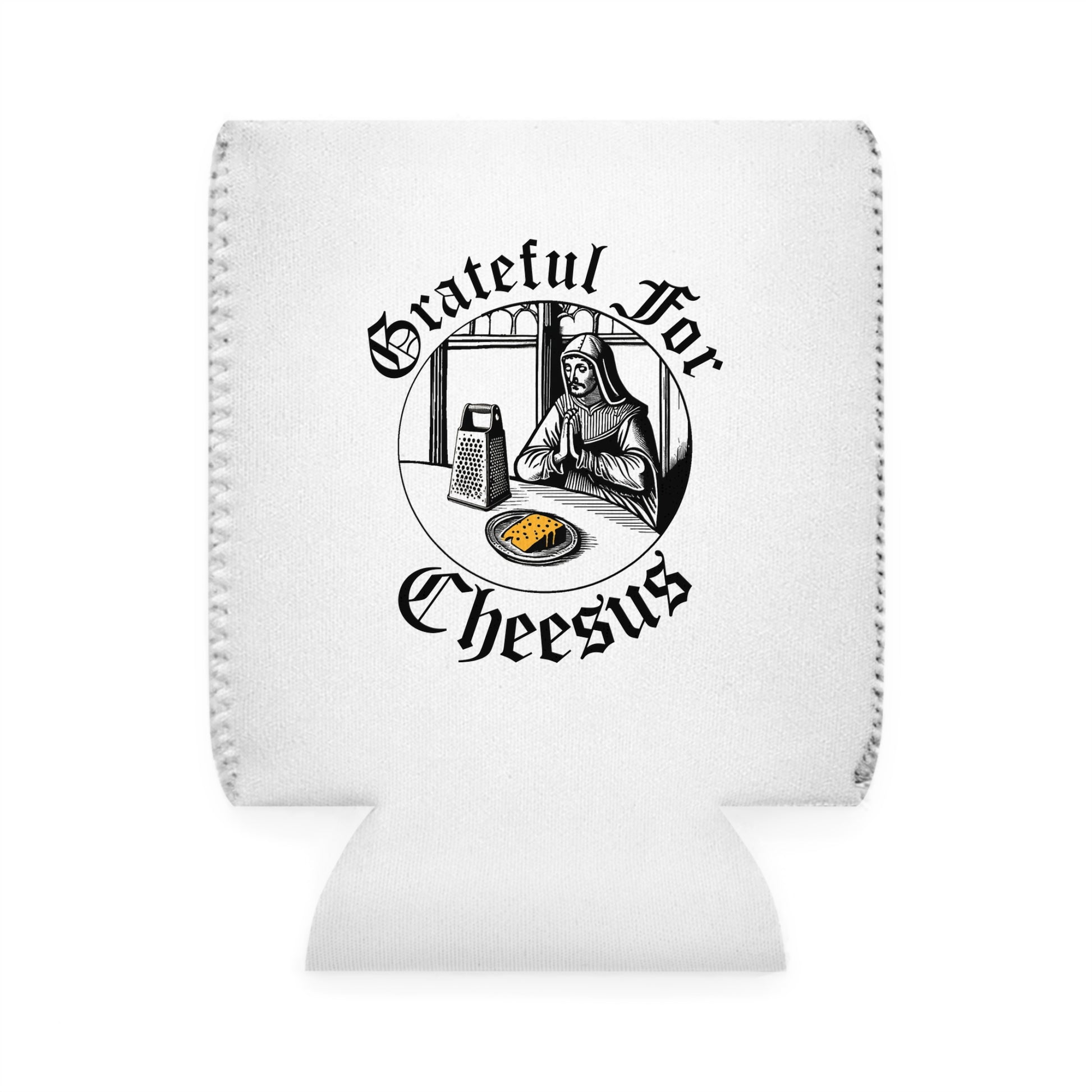 Grateful for Cheesus Can Cooler Sleeve, Funny Beer Koozie
