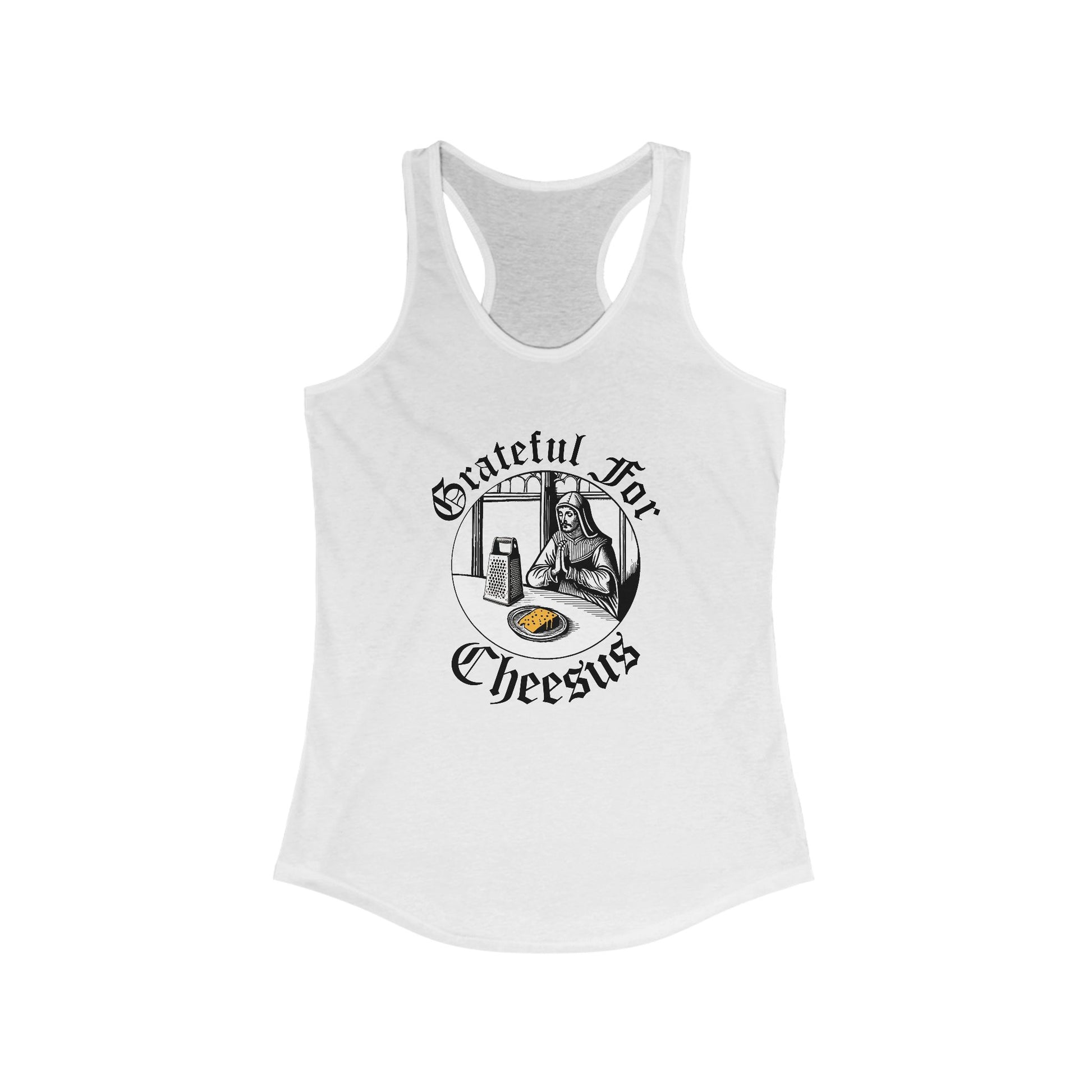 Grateful for Cheesus Racerback Tank, Funny Tank Top for Women